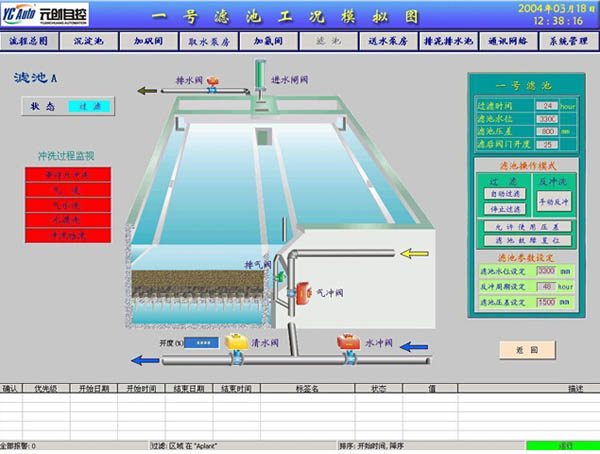 濾池就地控制柜濾池自控系統(tǒng)監(jiān)控畫面